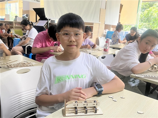 随后进入实操环节,孩子们在指导下使用磁铁、轨道模型、小车身等材料制作“迷你磁悬浮装置”。通过调整磁铁的安装位置和极性,观察小车身如何在磁力作用下“悬浮”在轨道上,在不断摸索和调整中,感受磁力“排斥”产生的悬浮效果。当自己制作的小装置成功实现悬浮时,孩子们脸上都洋溢出自豪的微笑,现场充满欢声笑语。